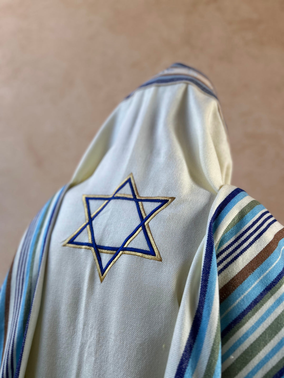 Hand woven tallitot made from wool threads in unique custom deisgns.