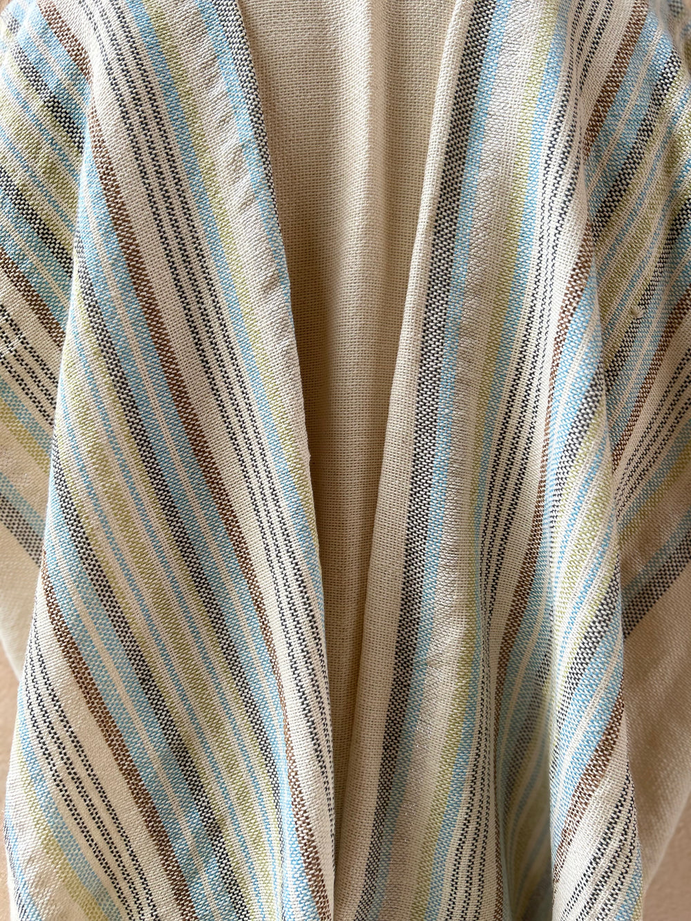 Handmade cotton tallit in blue, green, brown and cream colors.