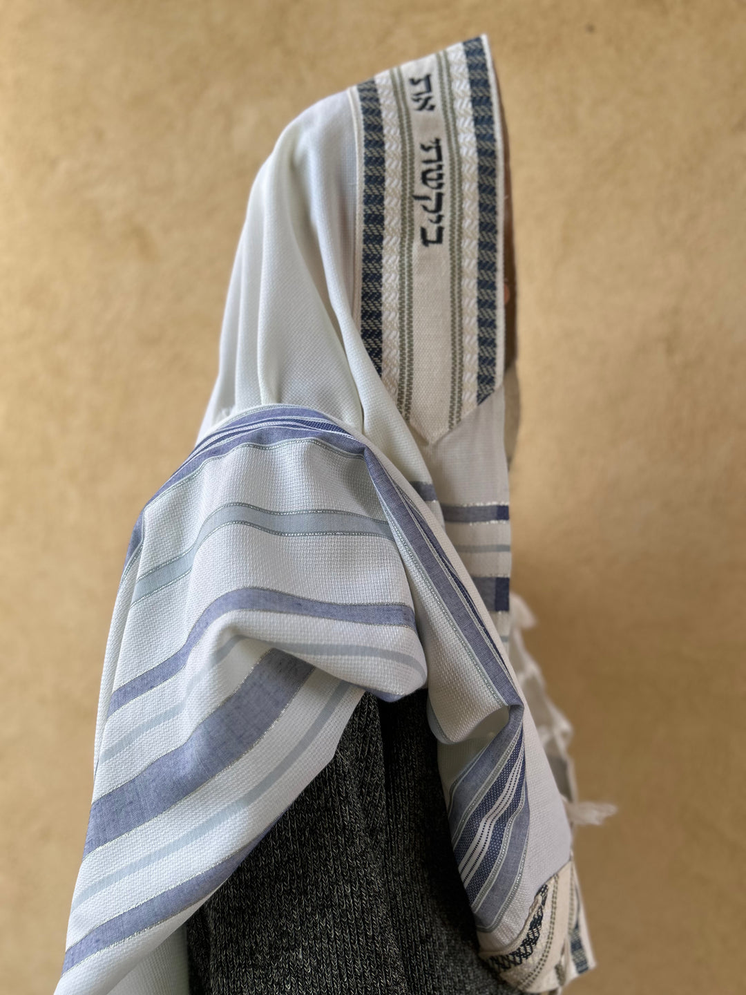 Handmade Wool/Cotton Tallit - Silver & Blue